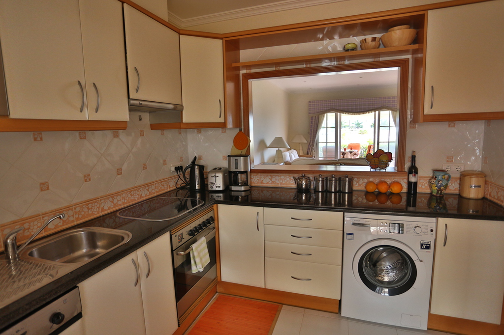Die Küche ist komplett und hochwertig ausgestattet mit Mikrowelle, Geschirrspüler, Waschmaschine, Kühl- Gefrierkombination, Ceran- Kochfeld, Backofen, Toaster, Wasserkocher, Kaffeemaschine, Bügeleisen und Bügelbrett.